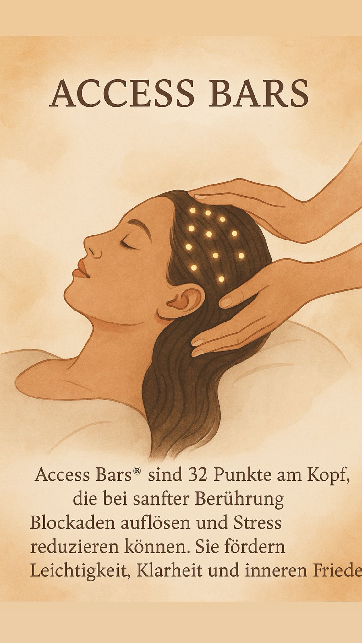 Seit 2022 begeistere ich mich für den Healy, ein innovatives Gerät, das Frequenztherapie zugänglich macht und ganzheitliche Balance fördert. Im Januar 2025 habe ich meine Ausbildung zur Access Bars® Practitioner abgeschlossen, um Menschen gezielt dabei zu unterstützen, Stress abzubauen, Blockaden zu lösen und mehr Klarheit im Leben zu finden.